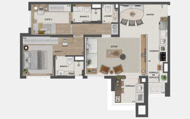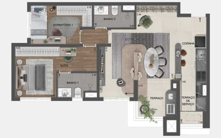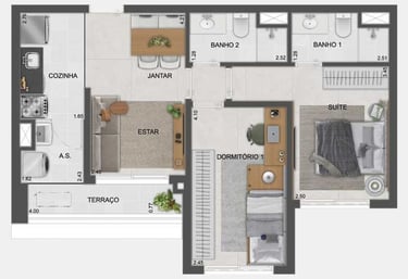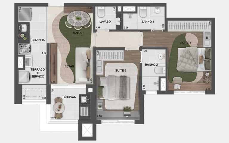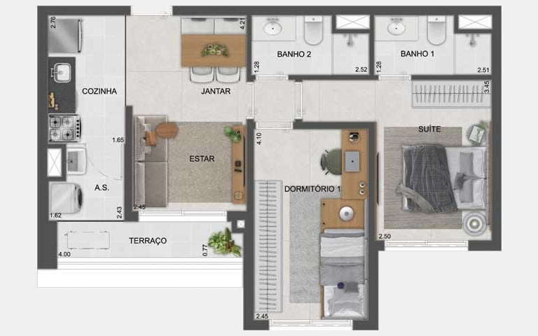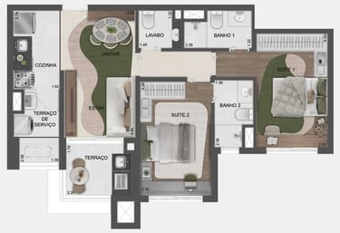 2 e 3 dorms. • 59 a 89 m² com 1 e 2 vagas