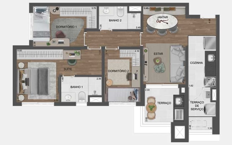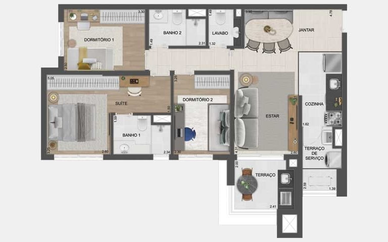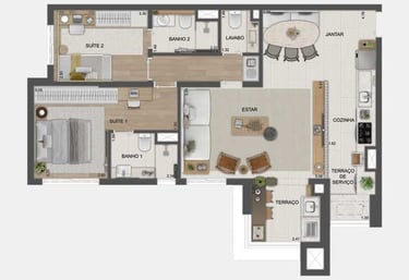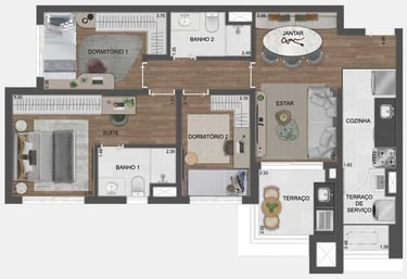 Planta opção do apto. de 76 ou 79 m² - 2 dorms.