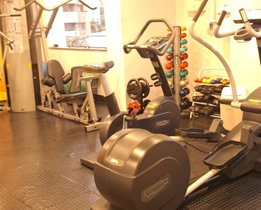 Ambiente equipado para a prática de exercícios e a manutenção da saúde.