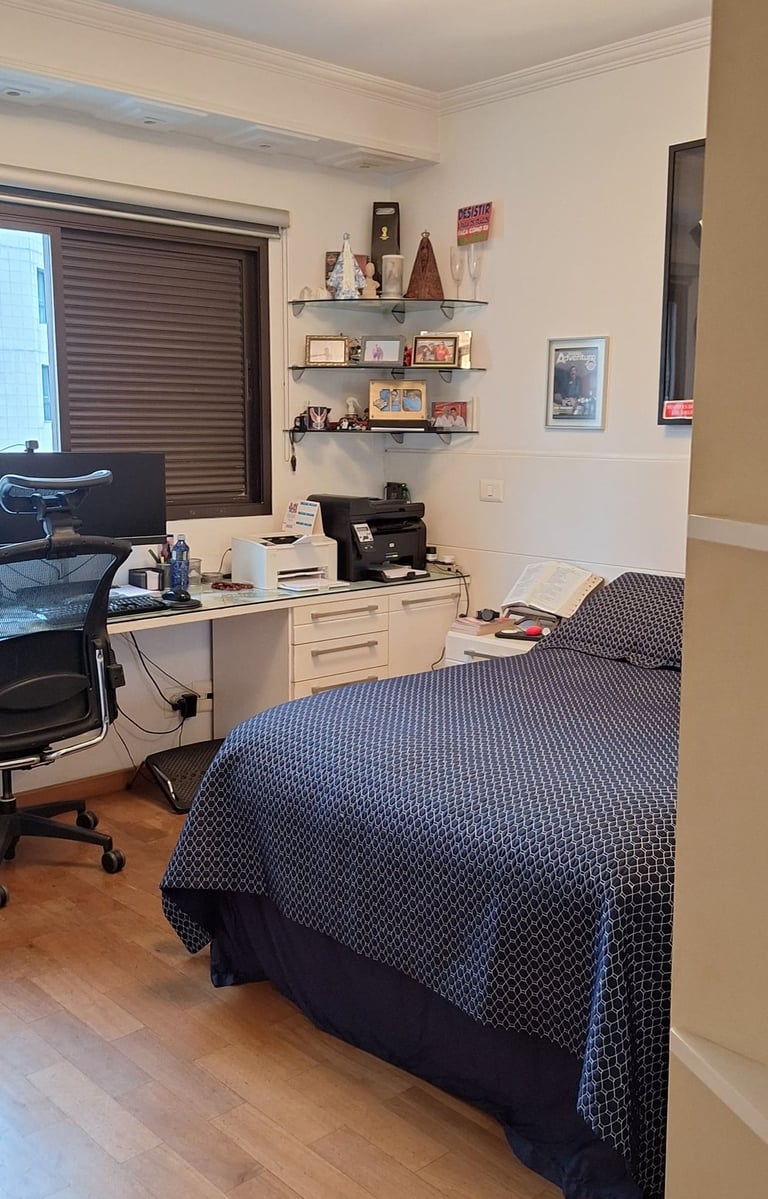 Impecável, com planta ampla e bem distribuída, localizado em uma rua tranquila de Moema, a apenas 15 minutos de caminhada do Parque Ibirapuera.